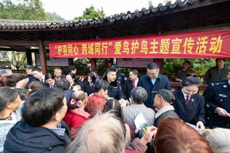 庭审结束,大院即刻变身“护鸟宣传集市”,江津区人民法院干警为群众结合鸟类保护案例,向大家介绍宪法规定的公民保护环境、维护生态平衡的基本义务。