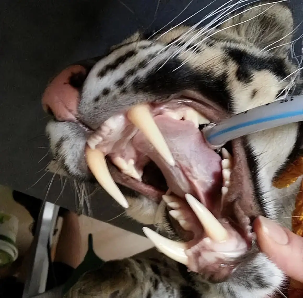 云豹的猎物清单也以树栖动物为主,包括麝猫、猕猴、长臂猿及各类鸟类等。值得称道的是,云豹拥有猫科动物中比例最长的犬齿,最长可达7厘米——要知道,即便是现存最大的猫科动物老虎、狮子,犬齿长度也仅在3-5厘米之间。若将云豹按比例放大,其形态与史前剑齿虎极为相似,因此它也被称为“活着的剑齿虎近亲”。