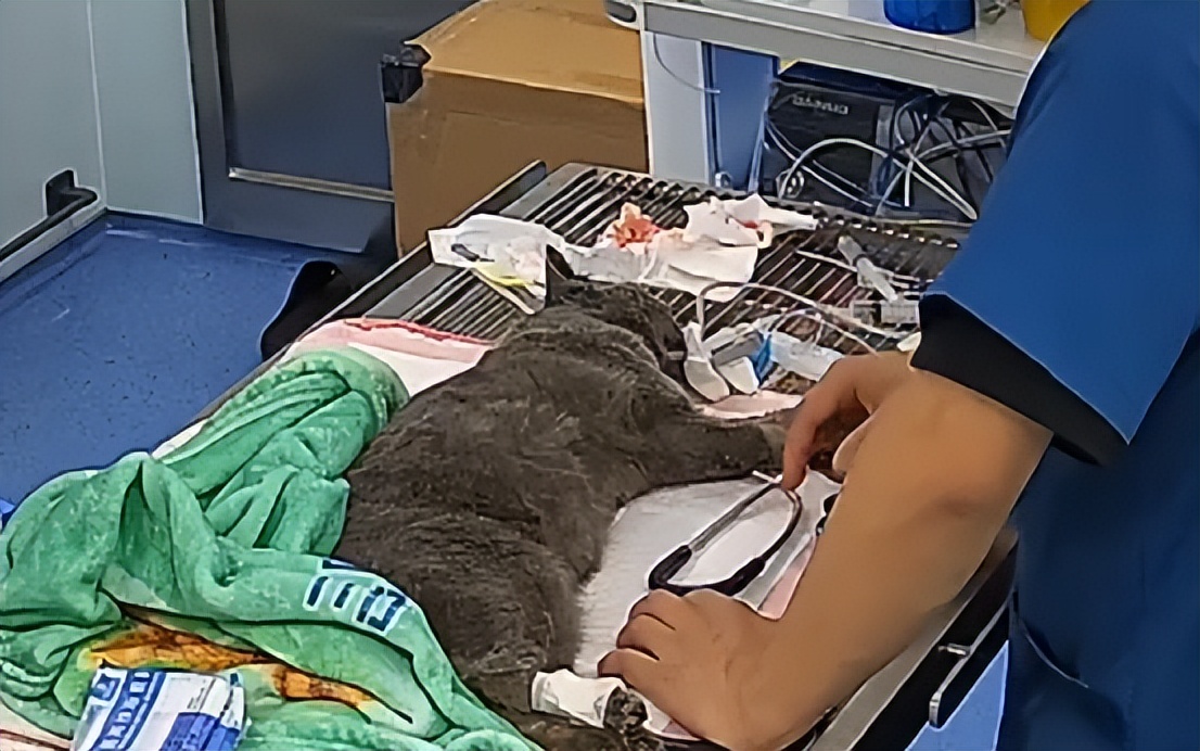 幸运的是,猫咪的求生欲望很强,医生尽其所能,做了一系列的检查和治疗,最终从死神手里抢回一命。
