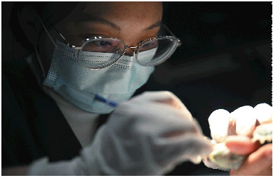“它的眼睛角膜溃疡了,属于细菌感染。我给你开一个角膜修复的眼药水回去给它滴上吧!”12月17日晚上7点多,在济南花园东路单大夫动物医院门诊室内,一个年轻女孩带着一只鹦鹉前来看病,这只鹦鹉的眼睛已经红肿得睁不开了。正在值班的异宠医生谭艺对鹦鹉的眼睛进行角膜荧光染色检查后得出诊断,并悉心地嘱咐女孩回去如何用药。