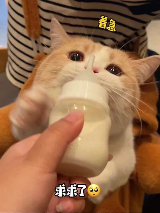 小姐姐见状,赶忙拿出一个小奶瓶,奶瓶刚一露面,猫咪立刻急得小手往前扑,眼神里全是迫不及待想赶快喝到奶。看到她拿着奶瓶,咕噜咕噜喝奶的模样,让人忍不住直呼:“太可爱了!”