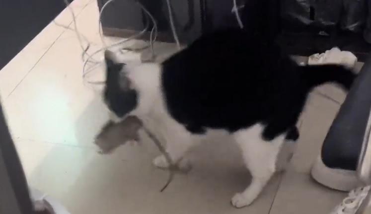更离谱的是,有时猫咪抓到老鼠后,竟然还会带回来给小姐姐,隔着屏幕都能感受到猫咪的爱意。