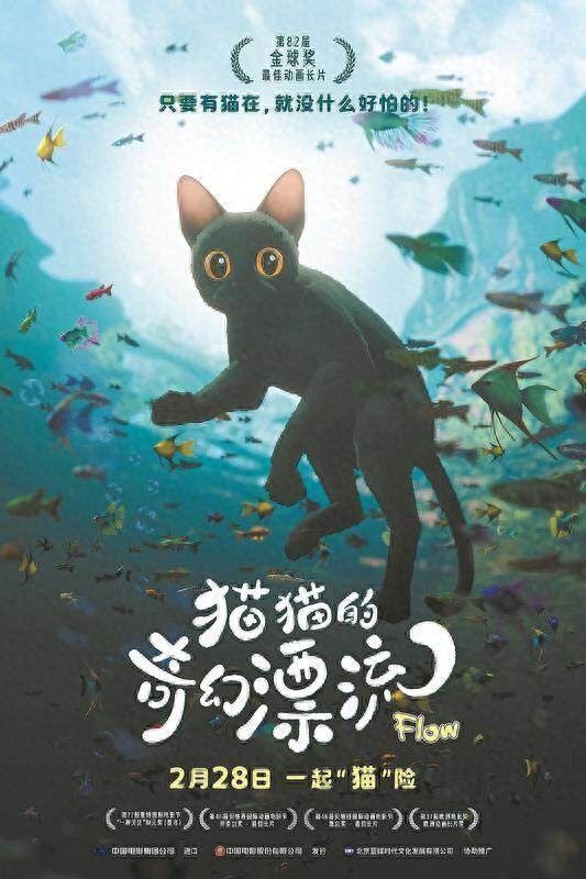 作为主人公的黑猫,在影片中更像是观察者和反应对象——对危险本能躲避,对生机奋力追求,方舟上其他动物所散发的善意则让它作为猫科动物的警惕本能逐渐放下。其在漂流过程中经历的恐惧、孤独与互助,恰似人类被抛入社会的个体成长过程。